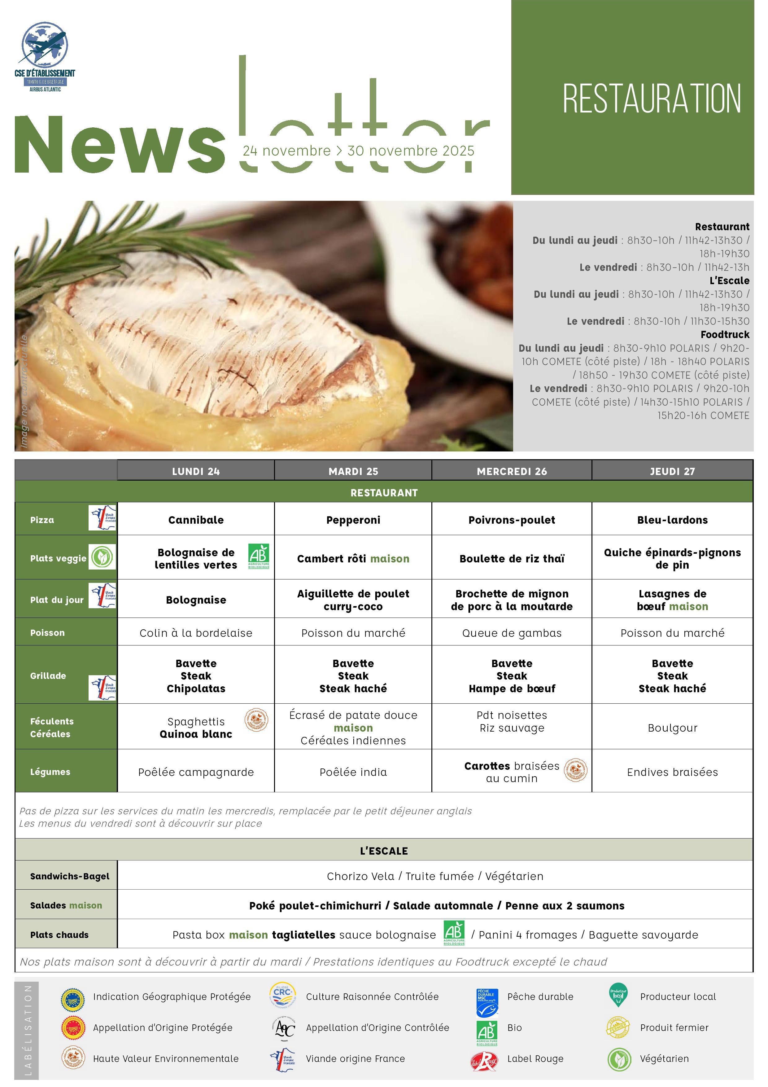 - Les menus de la semaine à l'Escale/Foodtruck.