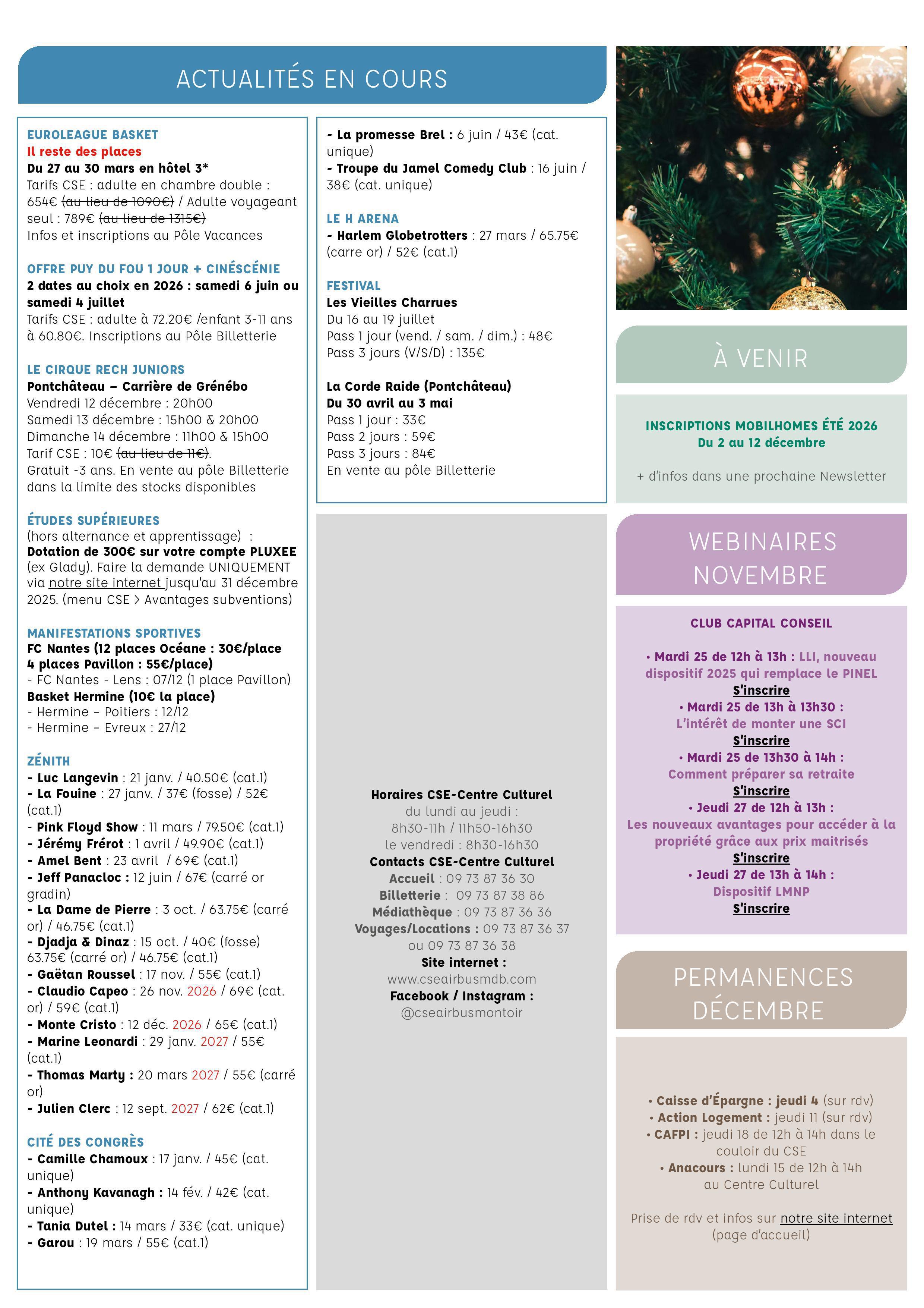 Et en fin de newsletter vous trouverez toutes les activités de Noël que votre CSE vous propose à l'approche des fêtes de fin d'année.