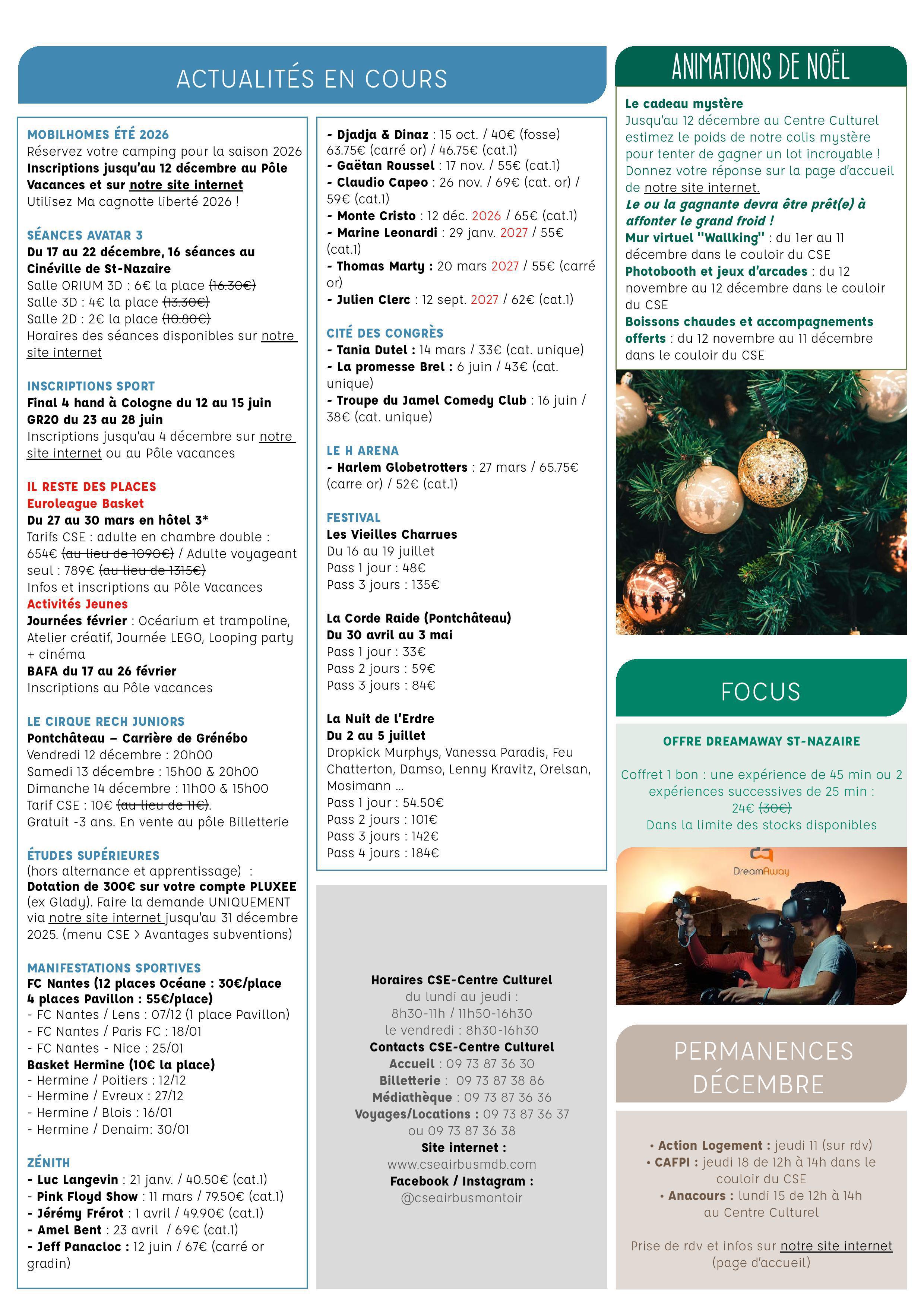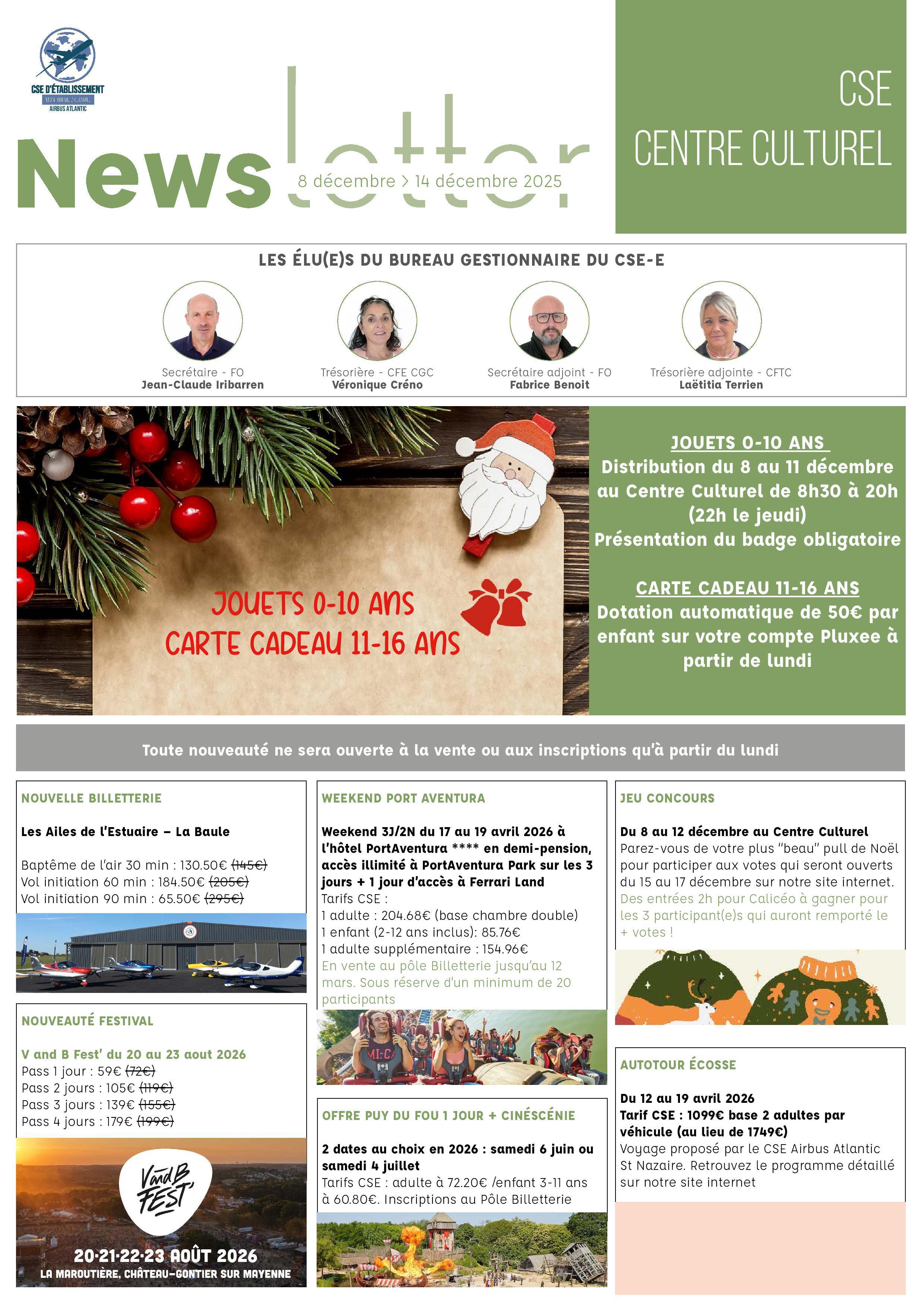 - Distribution des Jouets pour les 0-10 ans du 8 au 11 Décembre au centre culturel de 08h30 à 20h00 (22h le jeudi).