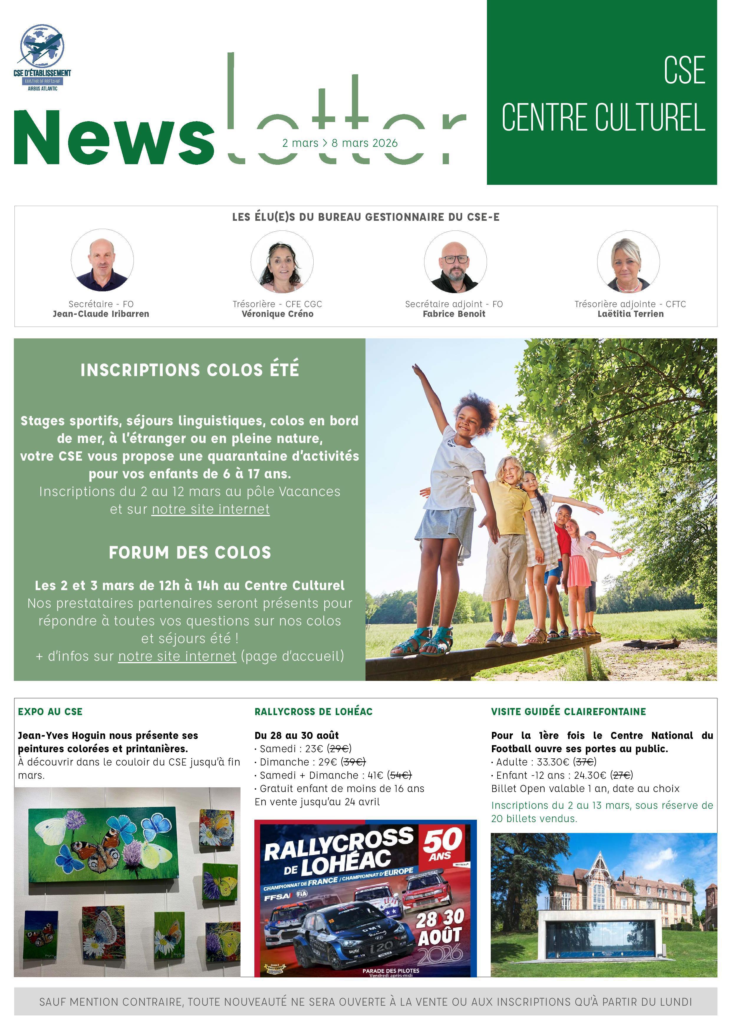 - Info sur les inscriptions colos été et forum des colos avec présence de nos prestataires les 2 et 3 Mars.
