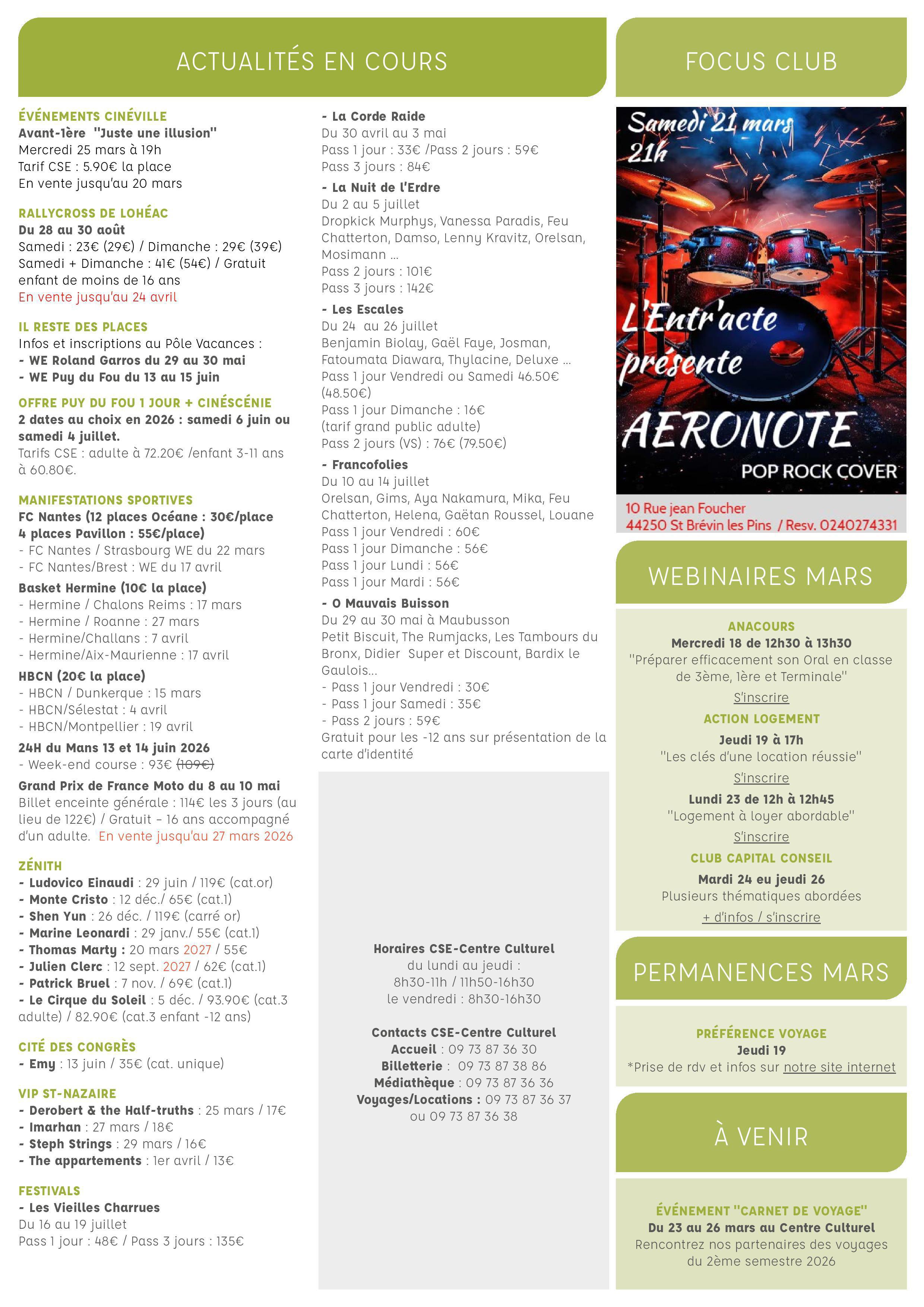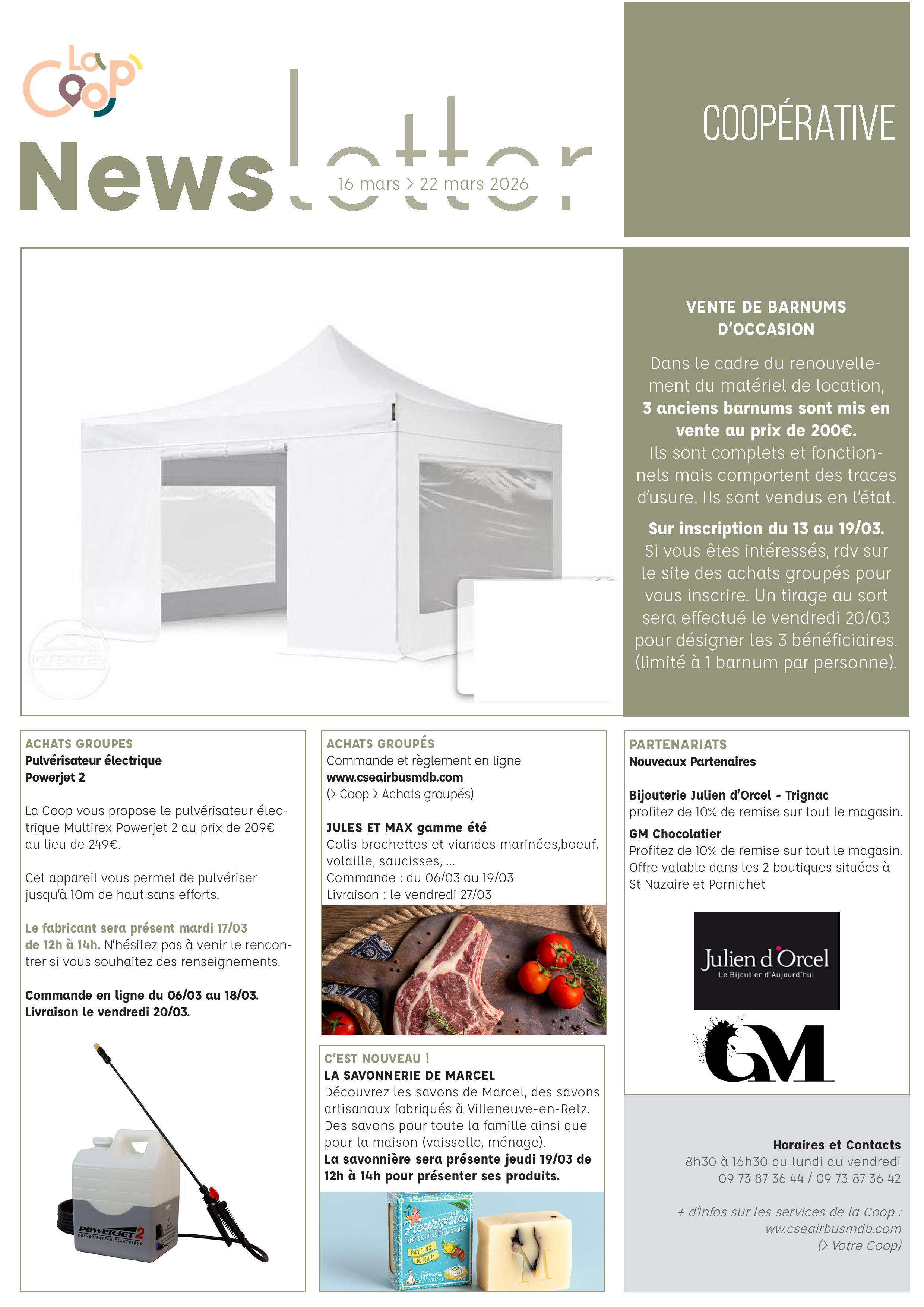 Informations du CSE et de la coopérative semaine 12