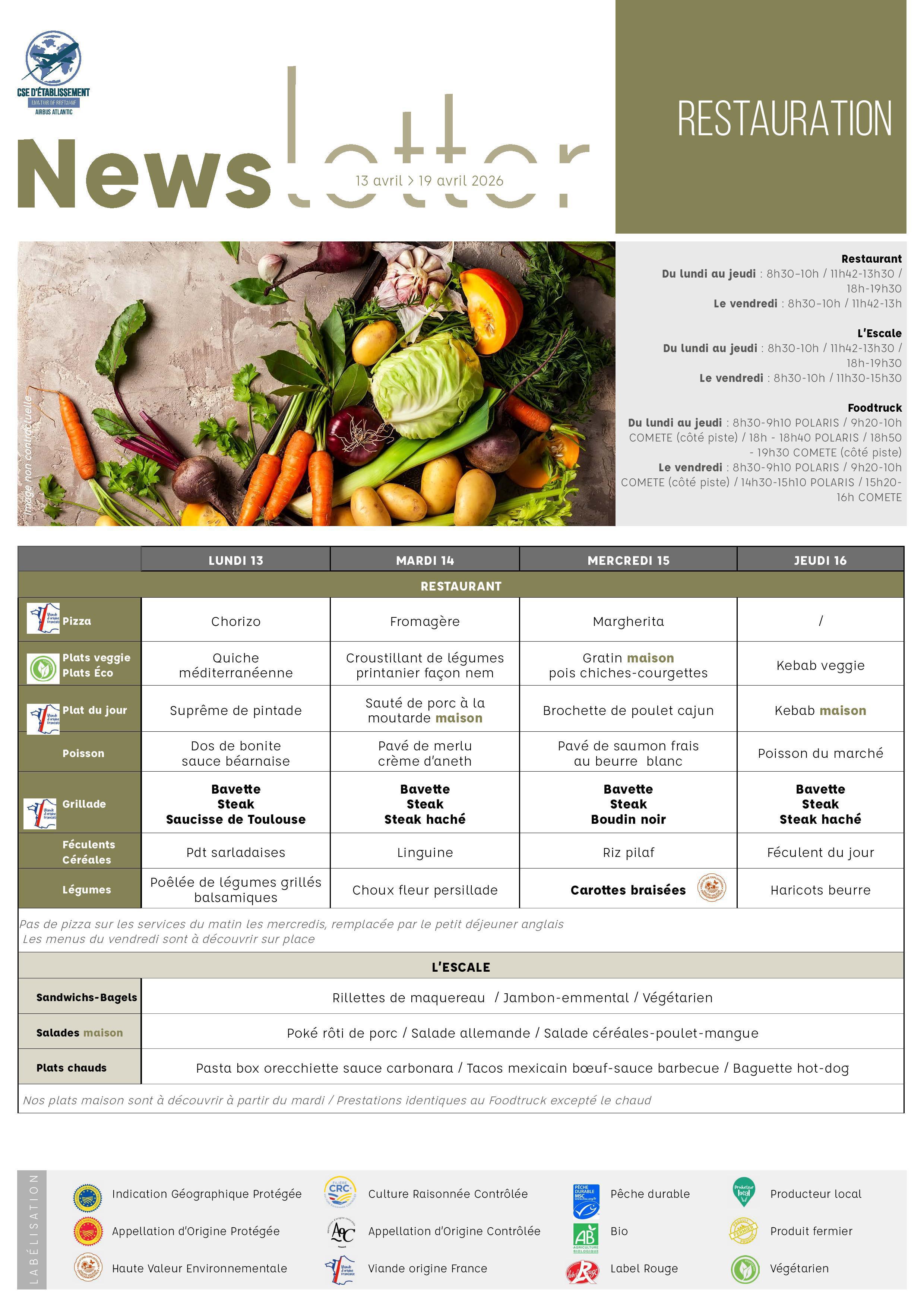 - Les menus de la semaine à l'Escale/Foodtruck.