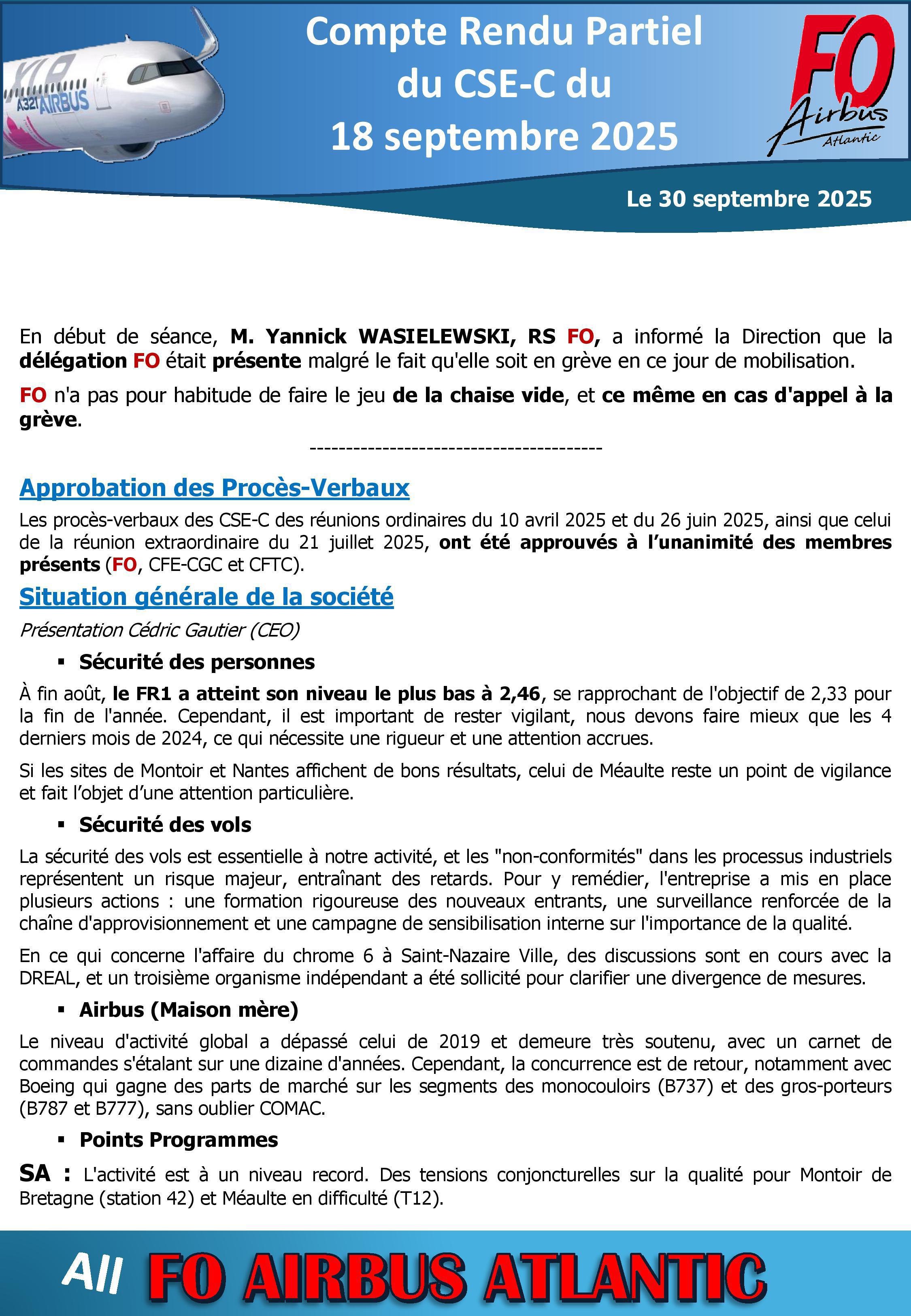 Compte-Rendu Partiel du CSE-C du 18 septembre 2025