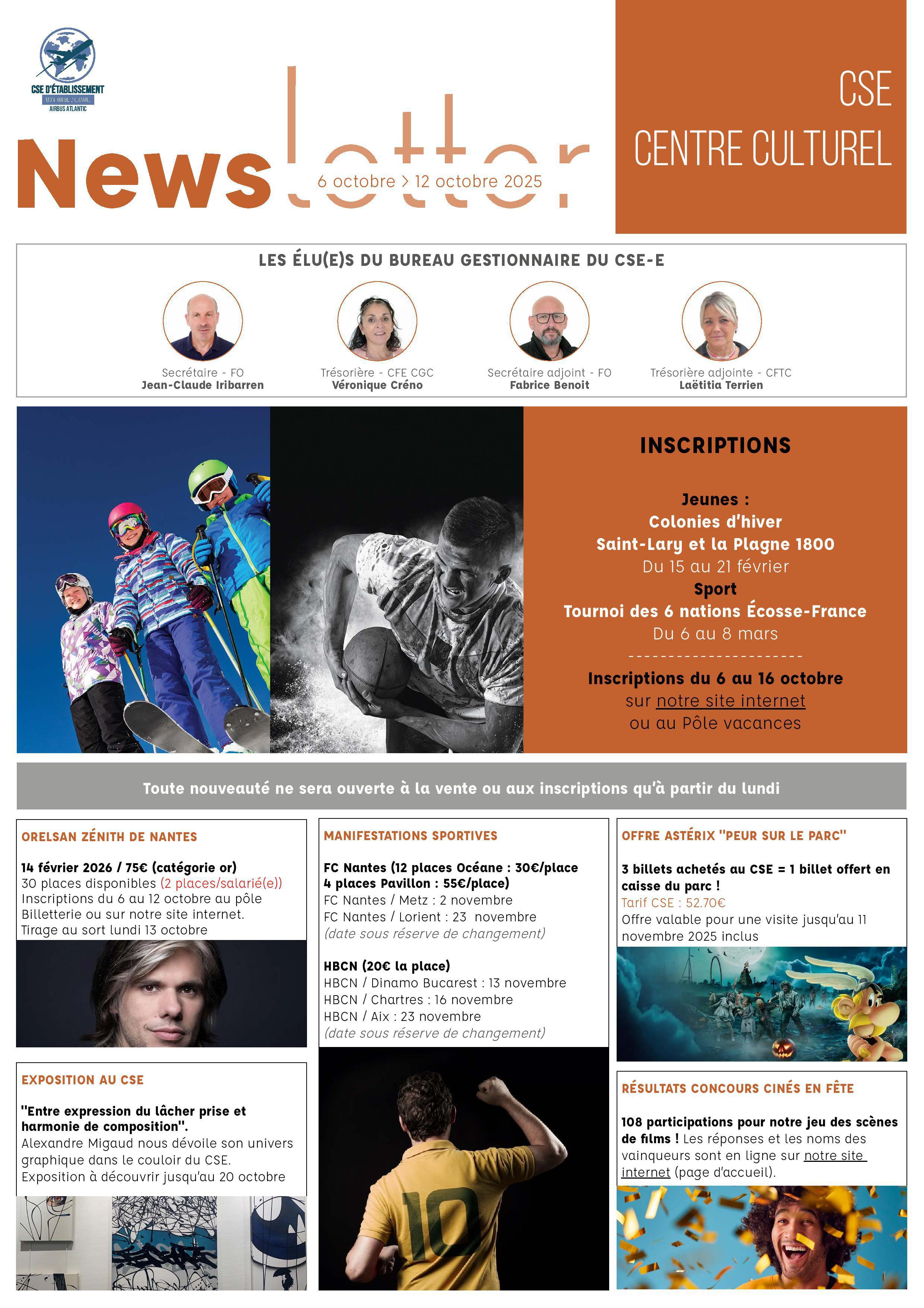 - Ouverture des inscriptions colonies jeunes et sport => tournoi des 6 nations => Ecosse/France.