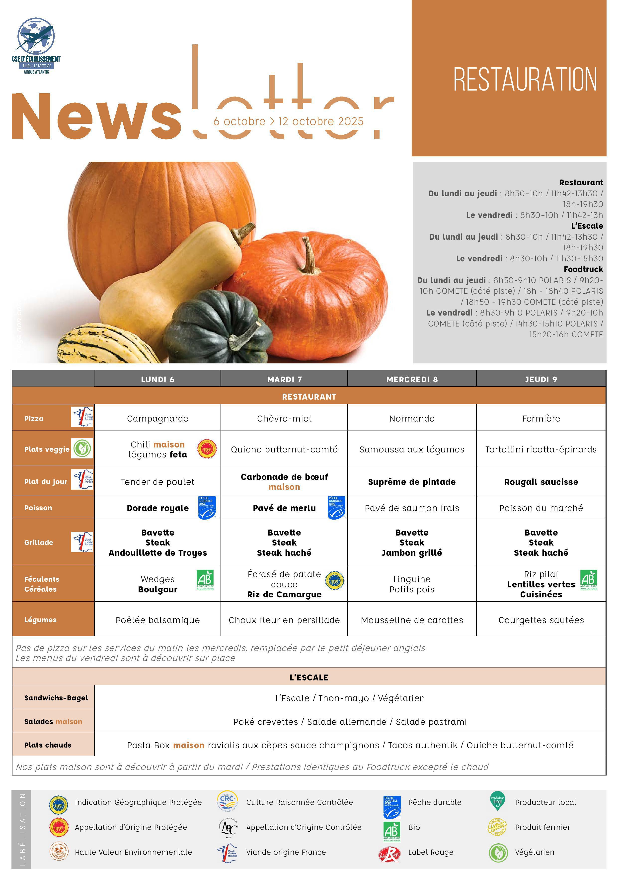 - Les menus de la semaine à l'Escale/Foodtruck.