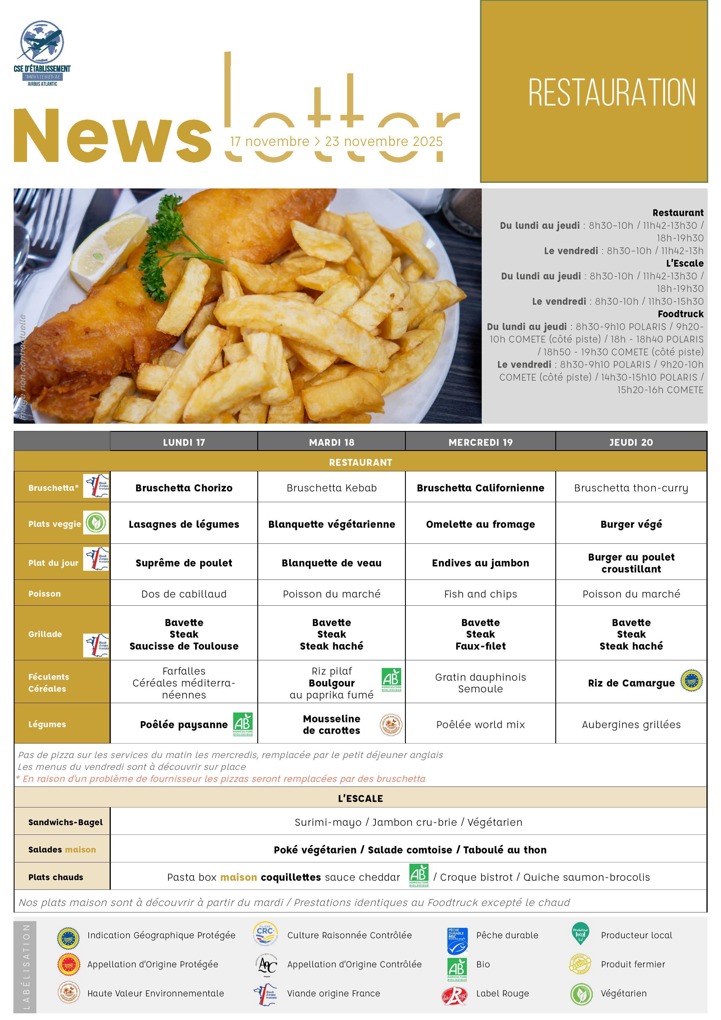 - Les menus de la semaine à l'Escale/Foodtruck.