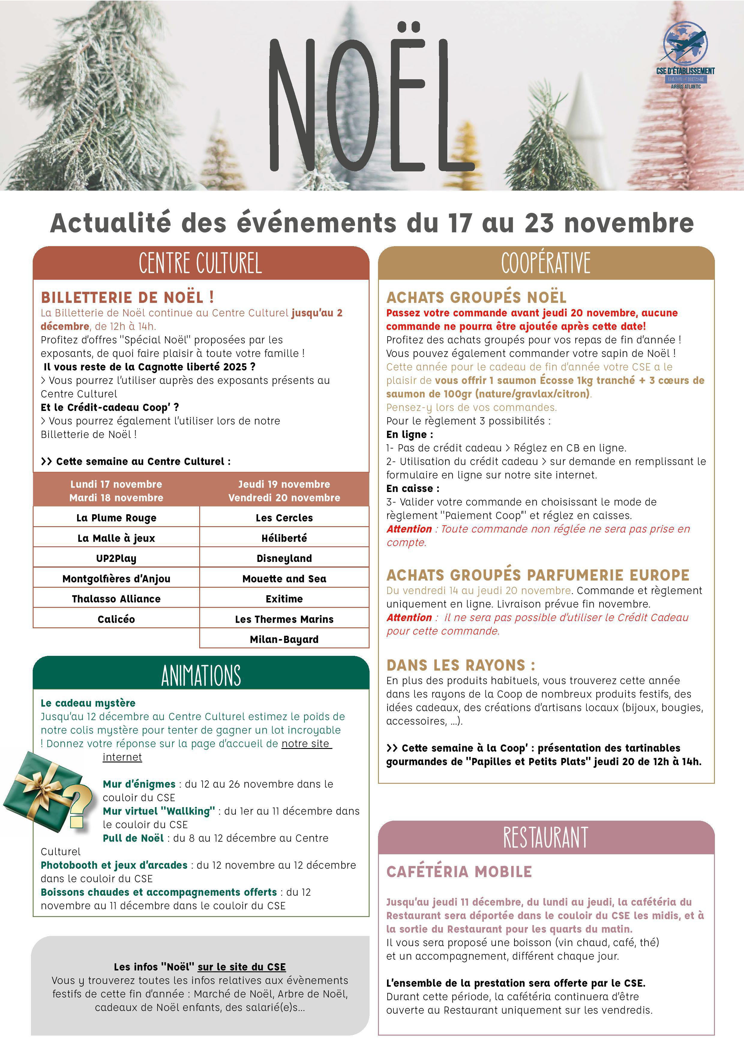 Et en fin de newsletter vous trouverez toutes les activités de Noël que votre CSE vous propose à l'approche des fêtes de fin d'année.