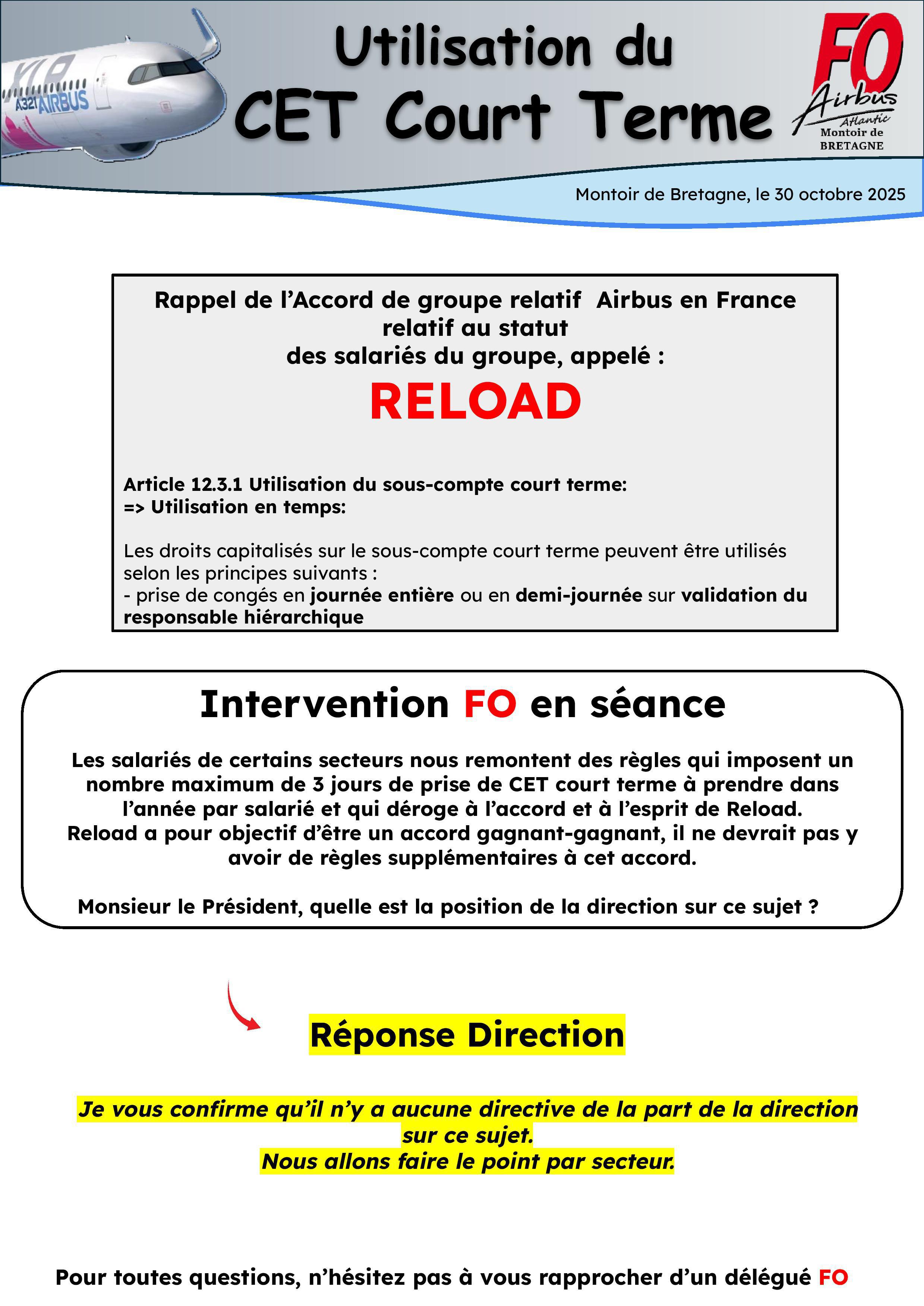 Intervention FO en CSE-E : Utilisation du CET Court Terme