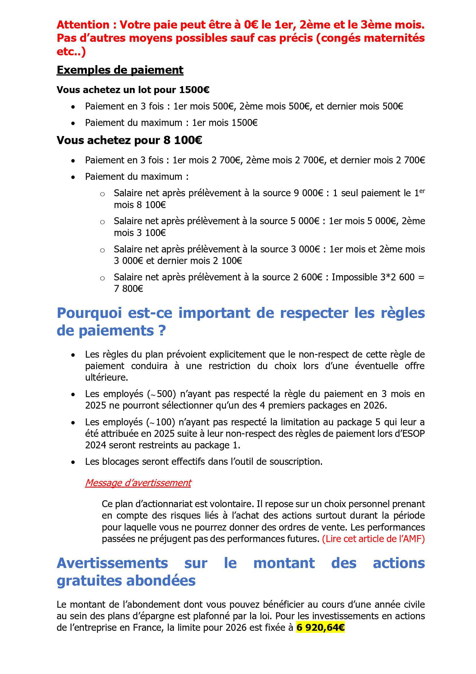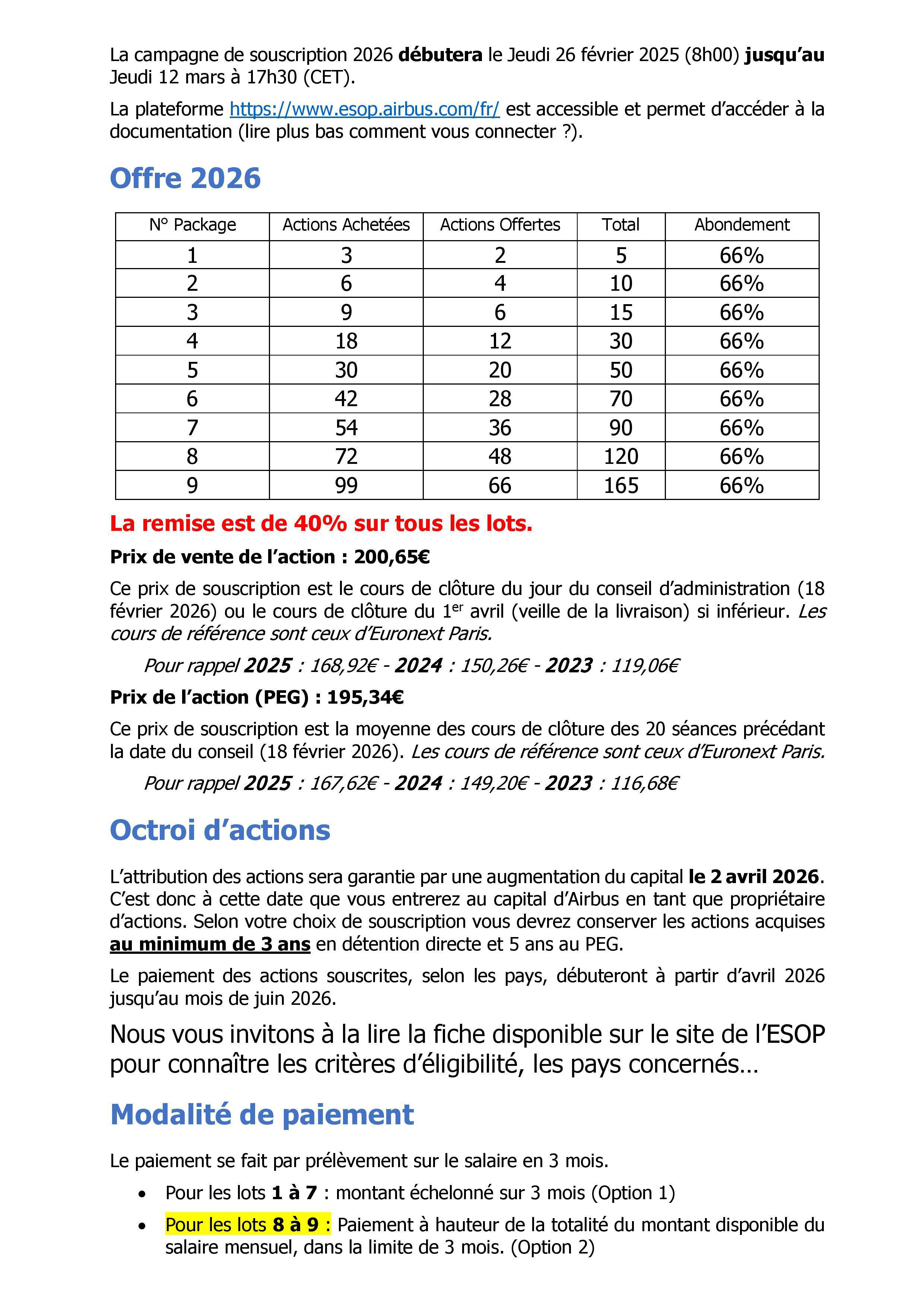 Ci-dessous une information sur le plan actionnariat ESOP Airbus 2026