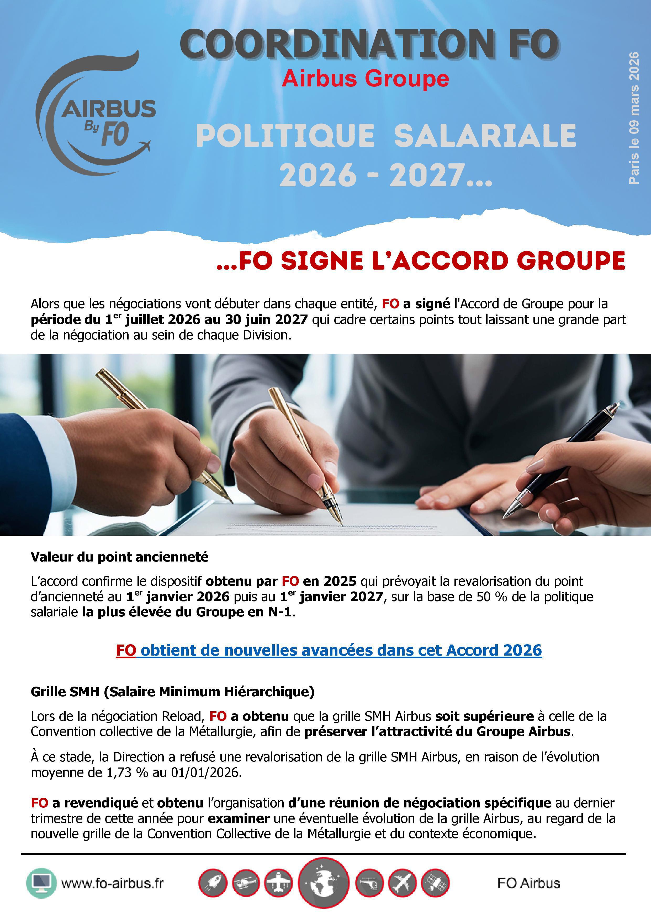 Politique salariale 2026-2027 : FO signe l'accord Groupe...